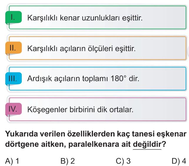 6. Sınıf Dörtgenlerin Özellikleri Test 1