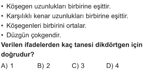 6. Sınıf Dörtgenlerin Özellikleri Test 1