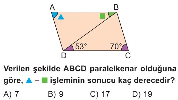 6. Sınıf Dörtgenlerin Özellikleri Test 7