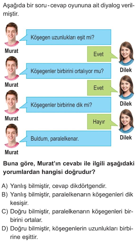6. Sınıf Dörtgenlerin Özellikleri Test 8