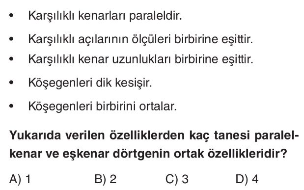 6. Sınıf Dörtgenlerin Özellikleri Test 8
