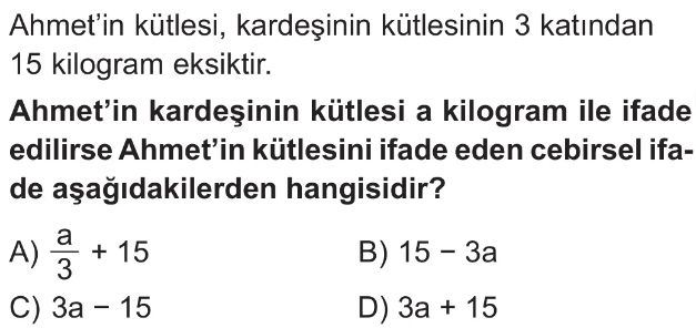 6. Sınıf Bilinmeyen Nicelikler Test 1