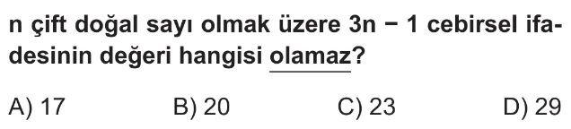 6. Sınıf Bilinmeyen Nicelikler Test 2