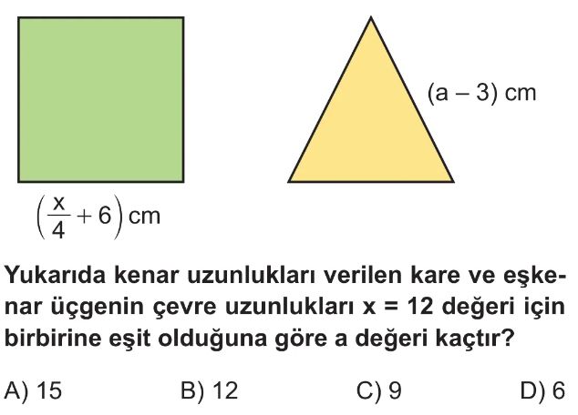 6. Sınıf Bilinmeyen Nicelikler Test 4