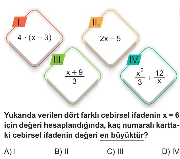 6. Sınıf Bilinmeyen Nicelikler Test 4