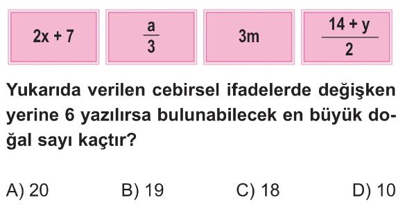 6. Sınıf Bilinmeyen Nicelikler Test 4