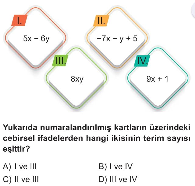 6. Sınıf Bilinmeyen Nicelikler Test 4