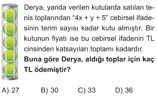 6. Sınıf Bilinmeyen Nicelikler Test 5