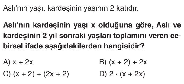 6. Sınıf Bilinmeyen Nicelikler Test 5