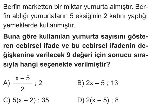 6. Sınıf Bilinmeyen Nicelikler Test 6