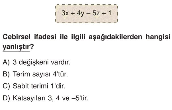 6. Sınıf Bilinmeyen Nicelikler Test 6