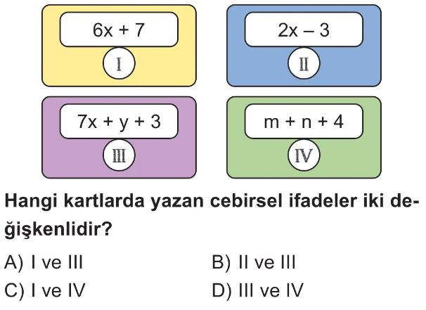 6. Sınıf Bilinmeyen Nicelikler Test 7