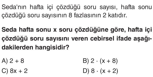 6. Sınıf Bilinmeyen Nicelikler Test 9
