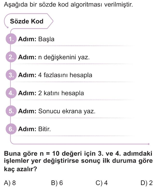 6. Sınıf İşlemlerle Cebirsel Düşünme ve Değişimler Tema Değerlendirme Test 2