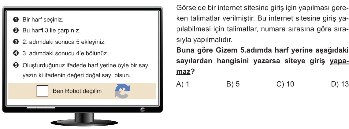 6. Sınıf İşlemlerle Cebirsel Düşünme ve Değişimler Tema Değerlendirme Test 2