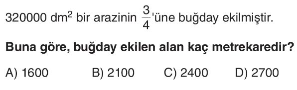 6. Sınıf Alan Ölçme Birimleri Test 1