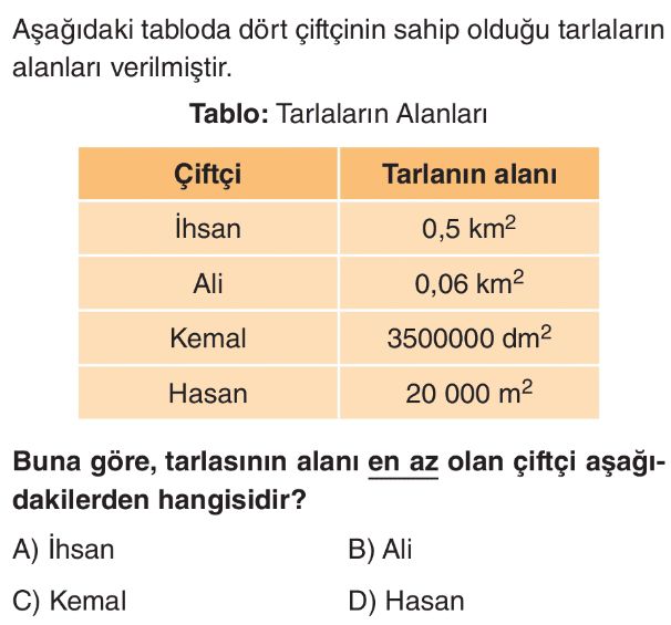 6. Sınıf Alan Ölçme Birimleri Test 1