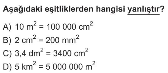 6. Sınıf Alan Ölçme Birimleri Test 1