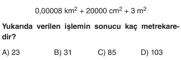6. Sınıf Alan Ölçme Birimleri Test 1