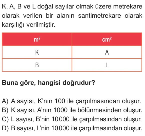 6. Sınıf Alan Ölçme Birimleri Test 2