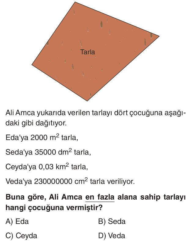 6. Sınıf Alan Ölçme Birimleri Test 5