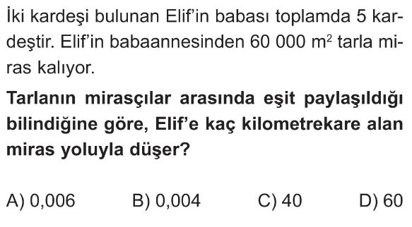 6. Sınıf Alan Ölçme Birimleri Test 5