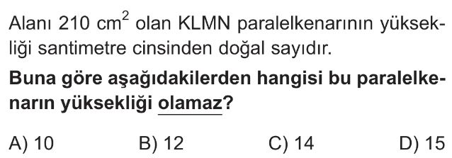 6. Sınıf Paralelkenar Ve Üçgenin Alanı Test 1