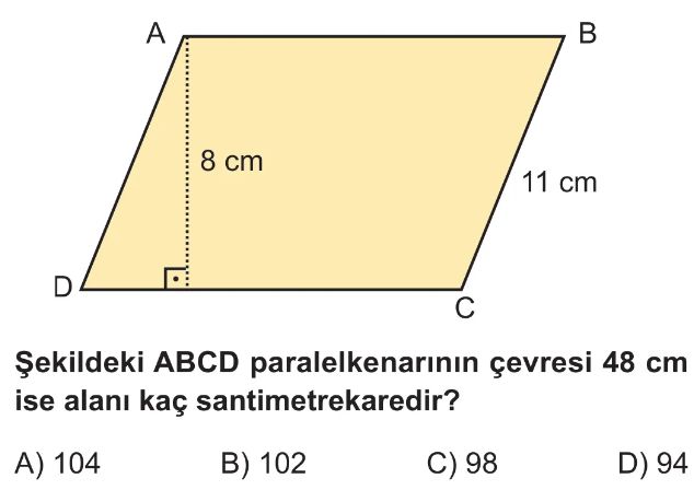 6. Sınıf Paralelkenar Ve Üçgenin Alanı Test 4