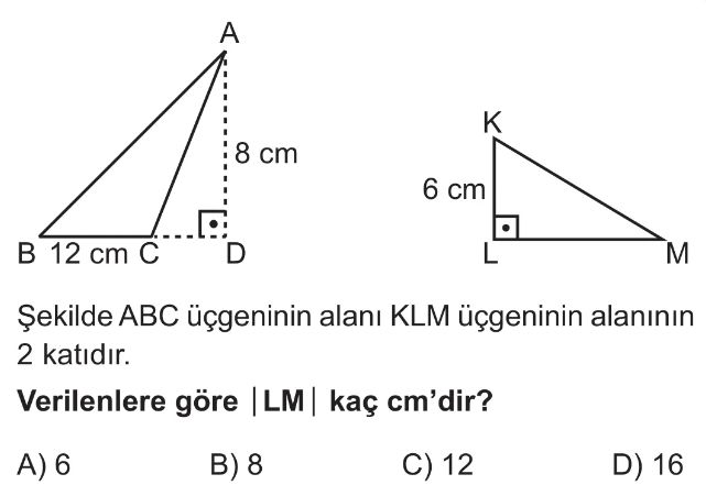 6. Sınıf Paralelkenar Ve Üçgenin Alanı Test 7