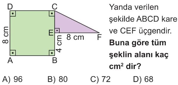 6. Sınıf Paralelkenar ve Üçgenin Alanı Problemleri Test 1