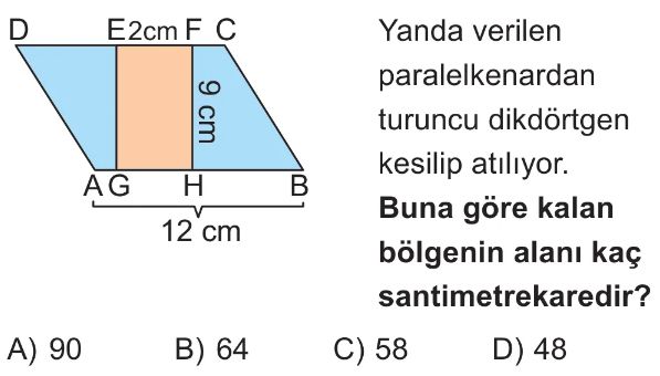 6. Sınıf Paralelkenar ve Üçgenin Alanı Problemleri Test 2