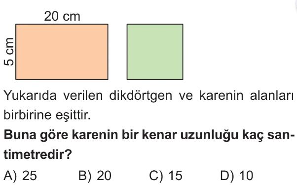 6. Sınıf Paralelkenar ve Üçgenin Alanı Problemleri Test 2