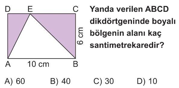6. Sınıf Paralelkenar ve Üçgenin Alanı Problemleri Test 3