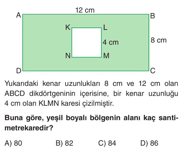 6. Sınıf Paralelkenar ve Üçgenin Alanı Problemleri Test 4