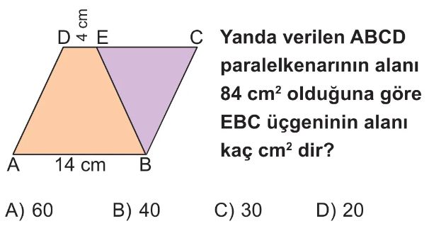6. Sınıf Paralelkenar ve Üçgenin Alanı Problemleri Test 4