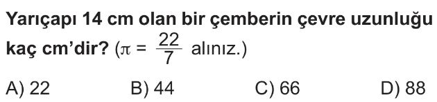 6. Sınıf Çemberin ve Çapının Uzunlukları Arasındaki İlişki Test 1