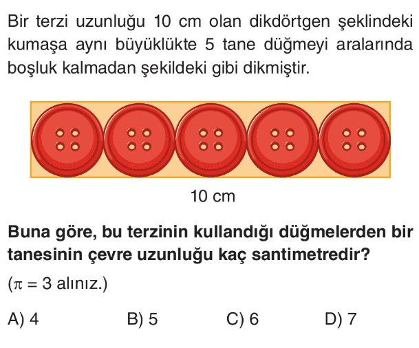 6. Sınıf Çemberin ve Çapının Uzunlukları Arasındaki İlişki Test 1