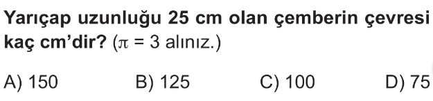 6. Sınıf Çemberin ve Çapının Uzunlukları Arasındaki İlişki Test 1