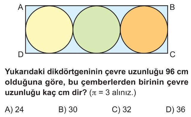 6. Sınıf Çemberin ve Çapının Uzunlukları Arasındaki İlişki Test 1