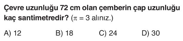 6. Sınıf Çemberin ve Çapının Uzunlukları Arasındaki İlişki Test 2