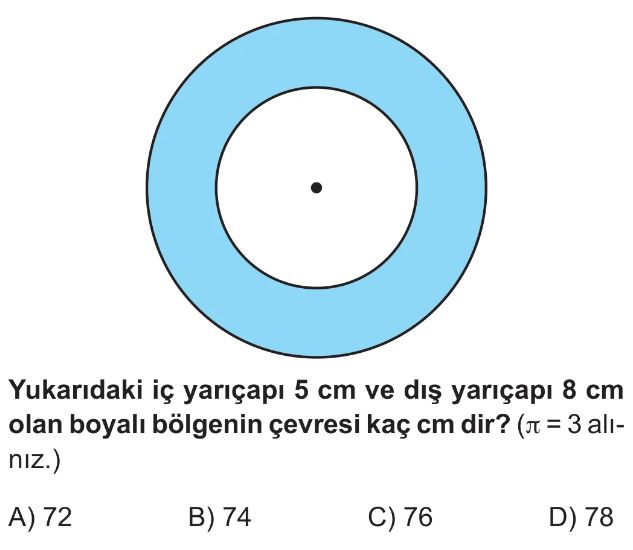 6. Sınıf Çemberin ve Çapının Uzunlukları Arasındaki İlişki Test 2