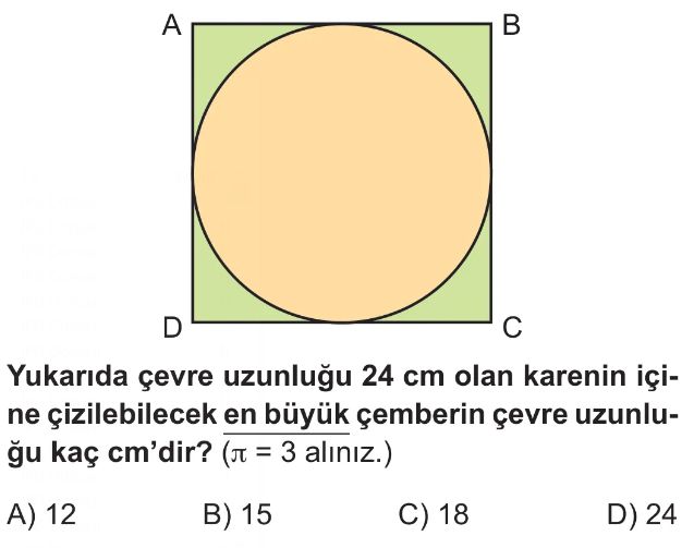 6. Sınıf Çemberin ve Çapının Uzunlukları Arasındaki İlişki Test 2