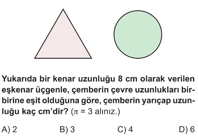 6. Sınıf Çemberin ve Çapının Uzunlukları Arasındaki İlişki Test 3