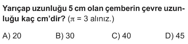 6. Sınıf Çemberin ve Çapının Uzunlukları Arasındaki İlişki Test 3