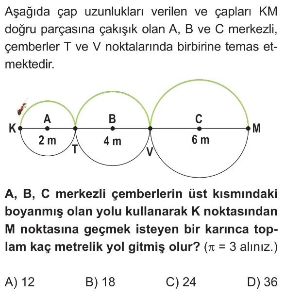 6. Sınıf Çemberin ve Çapının Uzunlukları Arasındaki İlişki Test 4