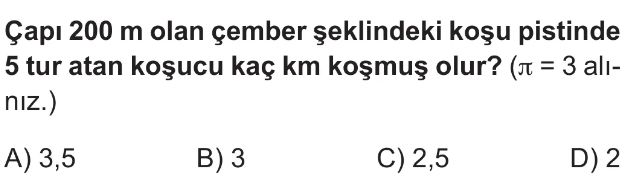 6. Sınıf Çemberin ve Çapının Uzunlukları Arasındaki İlişki Test 5