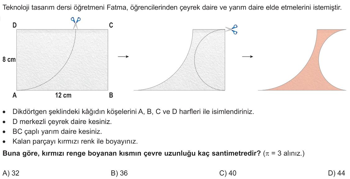 6. Sınıf Çemberde Merkez Açı ve Açının Gördüğü Yayın Uzunluğu Test 1