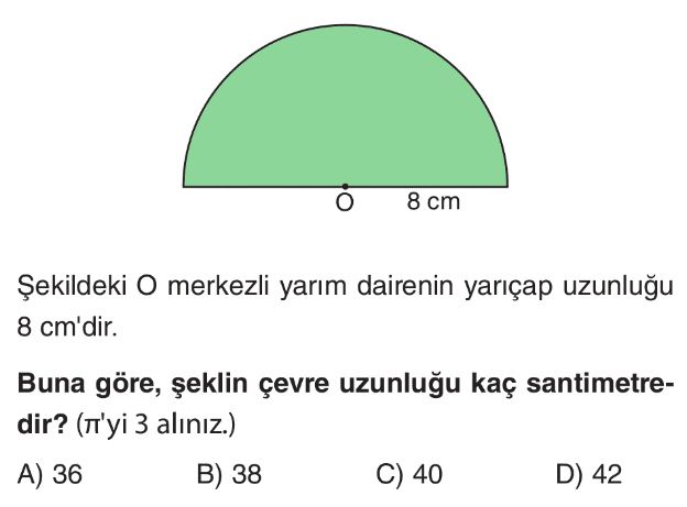 6. Sınıf Çemberde Merkez Açı ve Açının Gördüğü Yayın Uzunluğu Test 1
