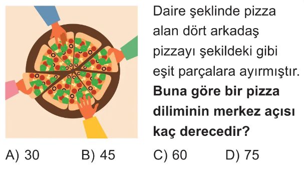 6. Sınıf Çemberde Merkez Açı ve Açının Gördüğü Yayın Uzunluğu Test 1