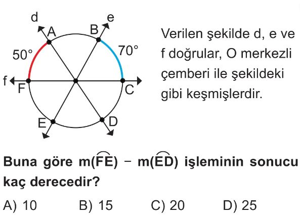 6. Sınıf Çemberde Merkez Açı ve Açının Gördüğü Yayın Uzunluğu Test 1